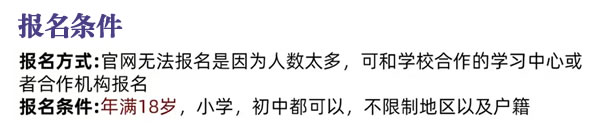 報名電大中專唯一的硬性條件就是必須年滿18周歲,否則注冊不上學籍。另外就是關于前置學歷的要求,不審核原件,但需要提供照片。如果沒有或丟失目前也是可以注冊報名的,但如何選擇專業和學制要根據自己的用途,具體可以咨詢盛老師。關于戶籍是沒有任何限制的,只要是中國合法公民都可以報名。