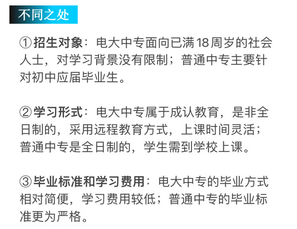 2、與全日制中專不同之處