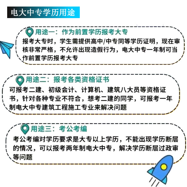 電大中專一直被公認(rèn)為小證書大用途,因?yàn)橐郧暗碾姶笾袑.厴I(yè)證真的是很小,不過現(xiàn)在新版的畢業(yè)證書要大氣多了,用途上仍然是非常廣泛的,包括但不限于用于提升大專學(xué)歷,用于報(bào)考執(zhí)業(yè)資格證書,用于考公考編完成政審,用于解決學(xué)歷斷層等。但一定要選擇正確的適合自己的學(xué)制和專業(yè)才行,不會(huì)選的聯(lián)系盛老師吧。十六年的招生管理經(jīng)驗(yàn),這一塊絕對(duì)是專業(yè)的。