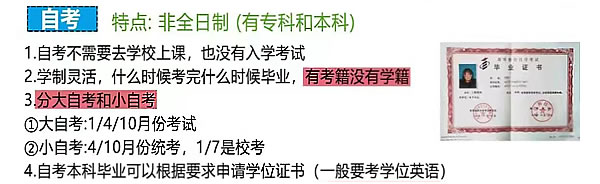 自學(xué)考試的優(yōu)勢(shì)就是沒有前置學(xué)歷要求,也就是說即便你沒有高中、初中學(xué)歷,也是可以報(bào)考自考大專的。但自考的弊端也是非常明顯的,讓大多數(shù)在職學(xué)歷提升的人望而卻步,這就是自考的通過率太低了,高的地區(qū)不足30%,低的地區(qū)不足10%,難度太大。所以近年來報(bào)考自考的人非常少,特別是???。如果你想報(bào)自考那么一定做好充足的準(zhǔn)備,預(yù)留充足的學(xué)習(xí)時(shí)間,同時(shí)盛老師建議大家也把電大中專報(bào)上,萬一自考考不過,報(bào)了電大中專畢業(yè)了還可以選擇報(bào)考國(guó)開和成考,不耽誤時(shí)間。