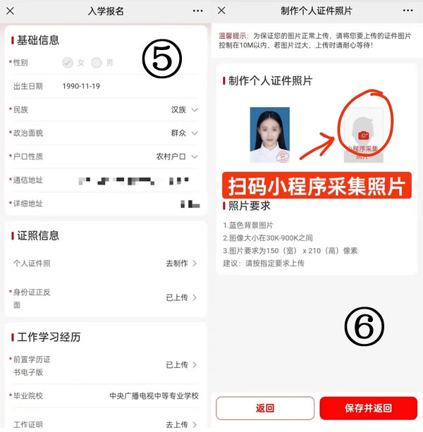 3、填寫個(gè)人信息,采集入學(xué)(畢業(yè))照片