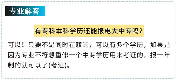很多同學(xué)問盛老師,我已經(jīng)有高學(xué)歷了還能報名電大中專嗎?明確的告訴大家完全可以,即便你已經(jīng)是研究生了,也還是可以報電大中專。很多同學(xué)聽了可能會懷疑,老師你開玩笑呢吧!研究生那么高的學(xué)歷還會報你電大中專干啥?實際上海真有,而且還有很多大專、本科,甚至研究生學(xué)歷的同學(xué)報考電大中專,因為他們要考資格證書專業(yè)不符,最主要就是想考二建,學(xué)歷專業(yè)不符,所以需要報考電大中專。